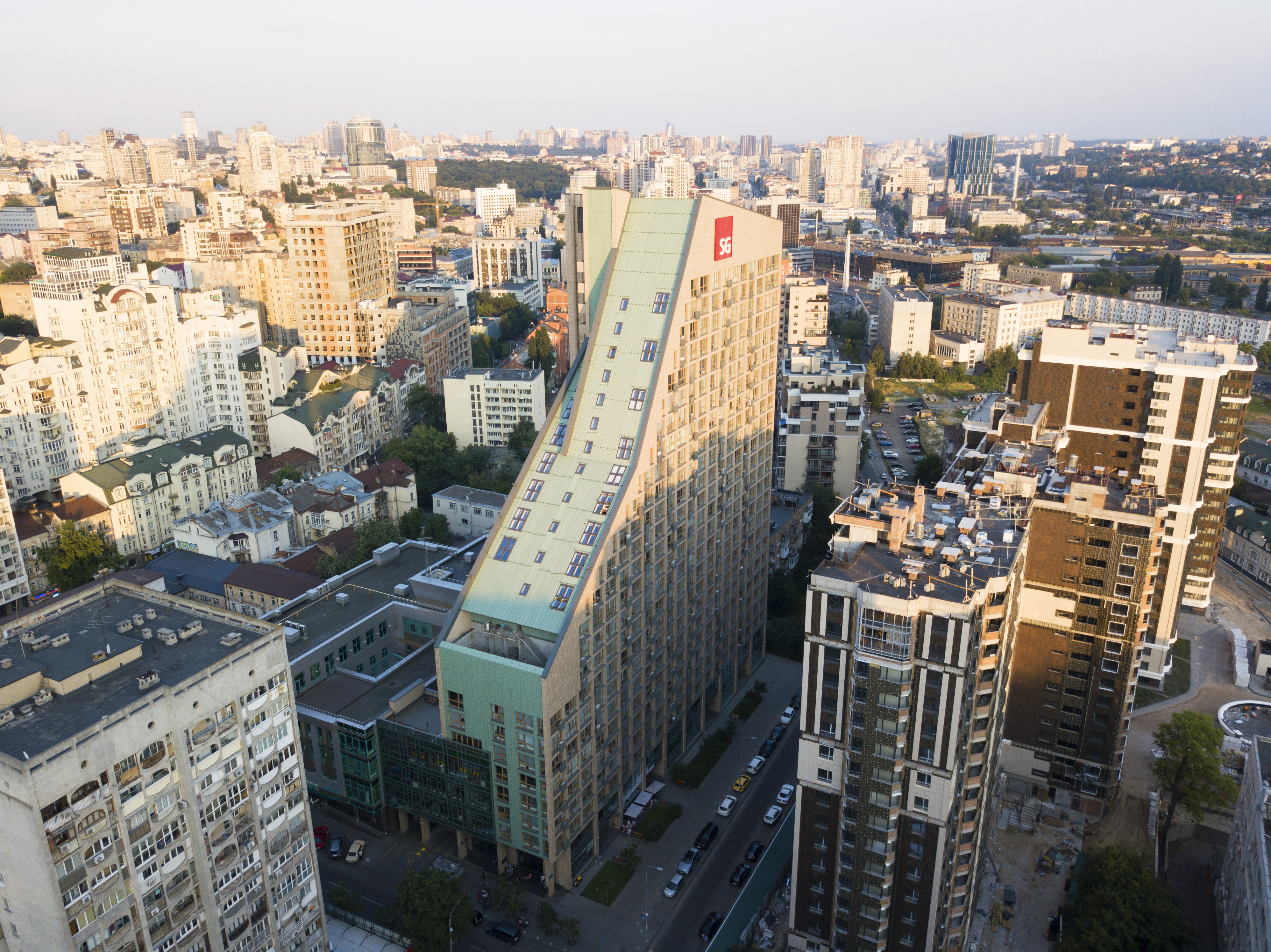 Офісно-житловий комплекс складається з 5-ти поверхового офісного та 25-ти поверхового житлового будинку. У будинку є підземний паркінг та гостьовий паркінг по вулиці Златоустівській.