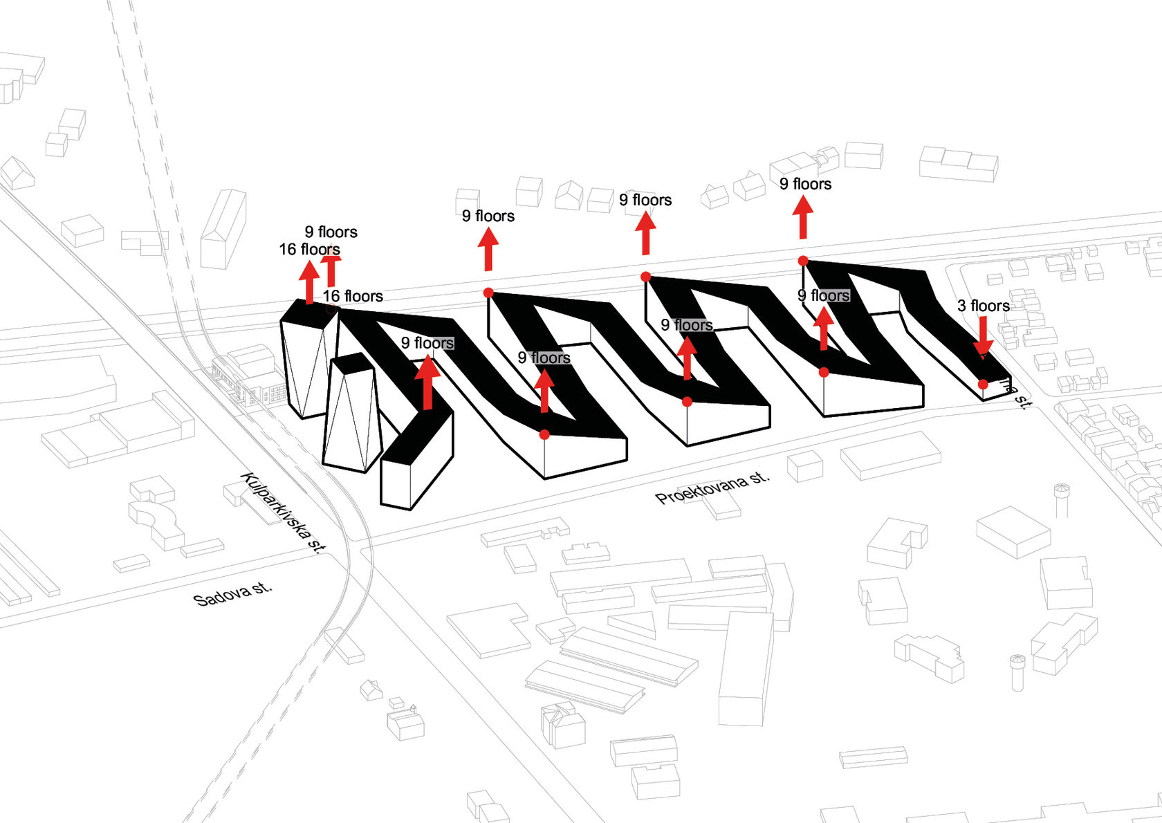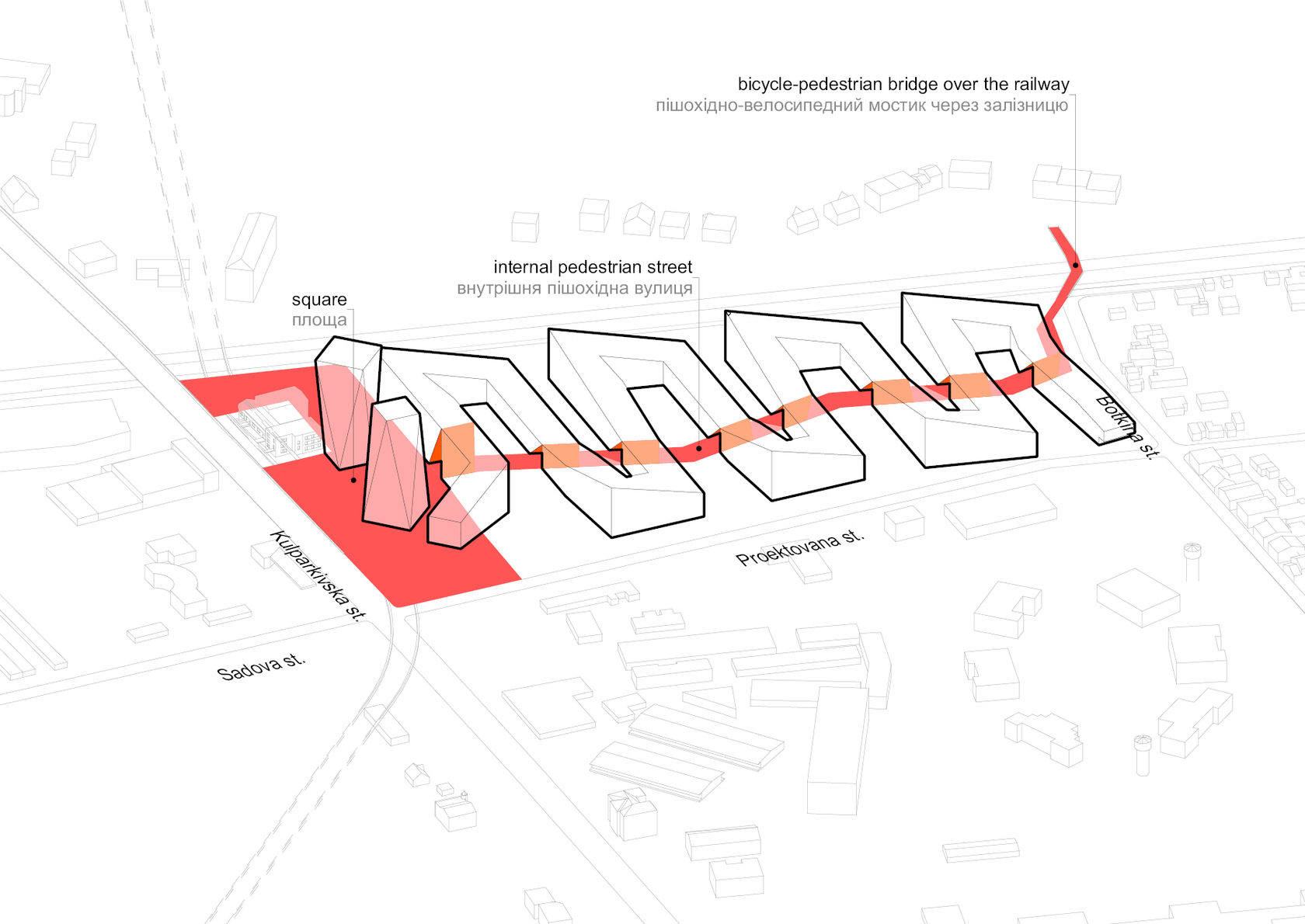 Окремою складовою проекту є міська площа з ознаками міського підцентру.