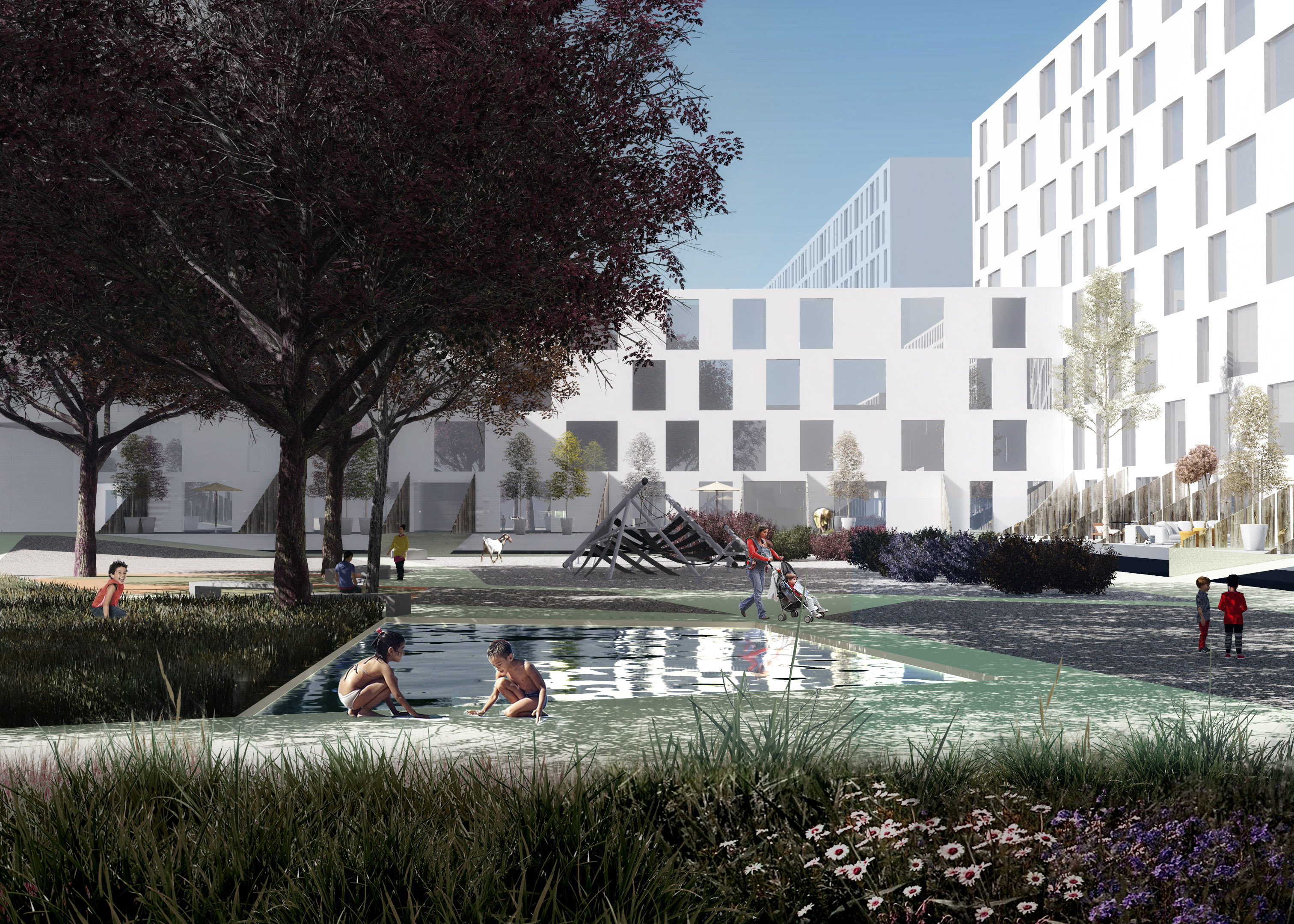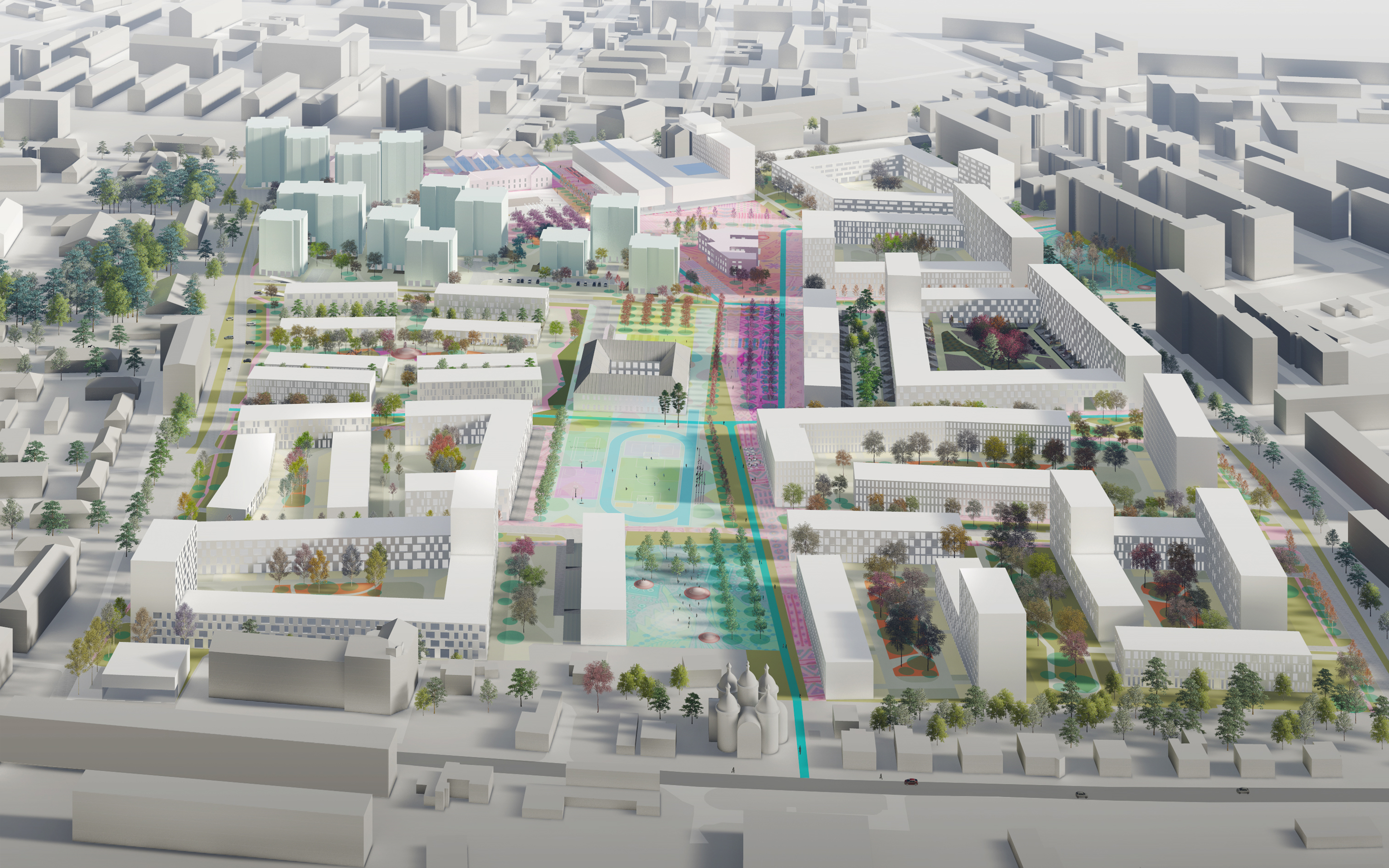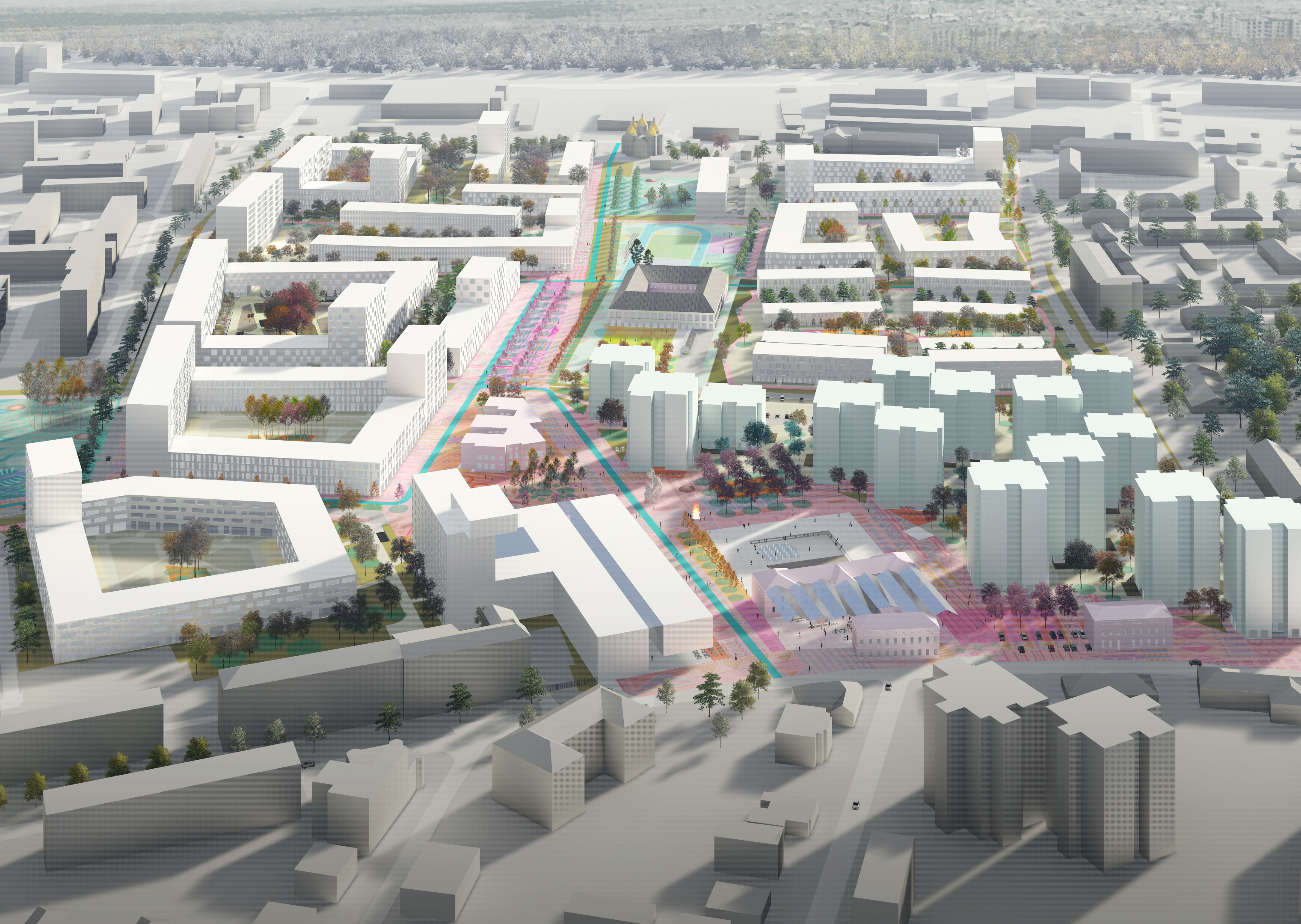 Конверсія колишньої військової території під житлову. На початок даної роботи на майданчику вже велися будівельні роботи, побудована перша група "башт".