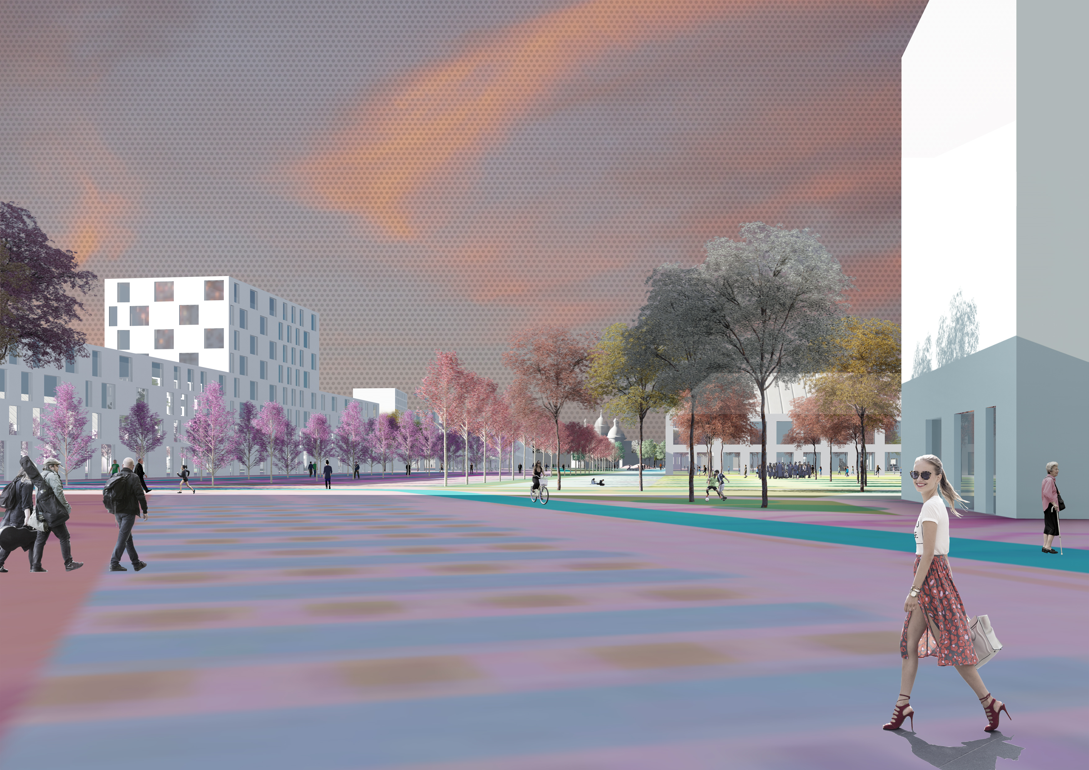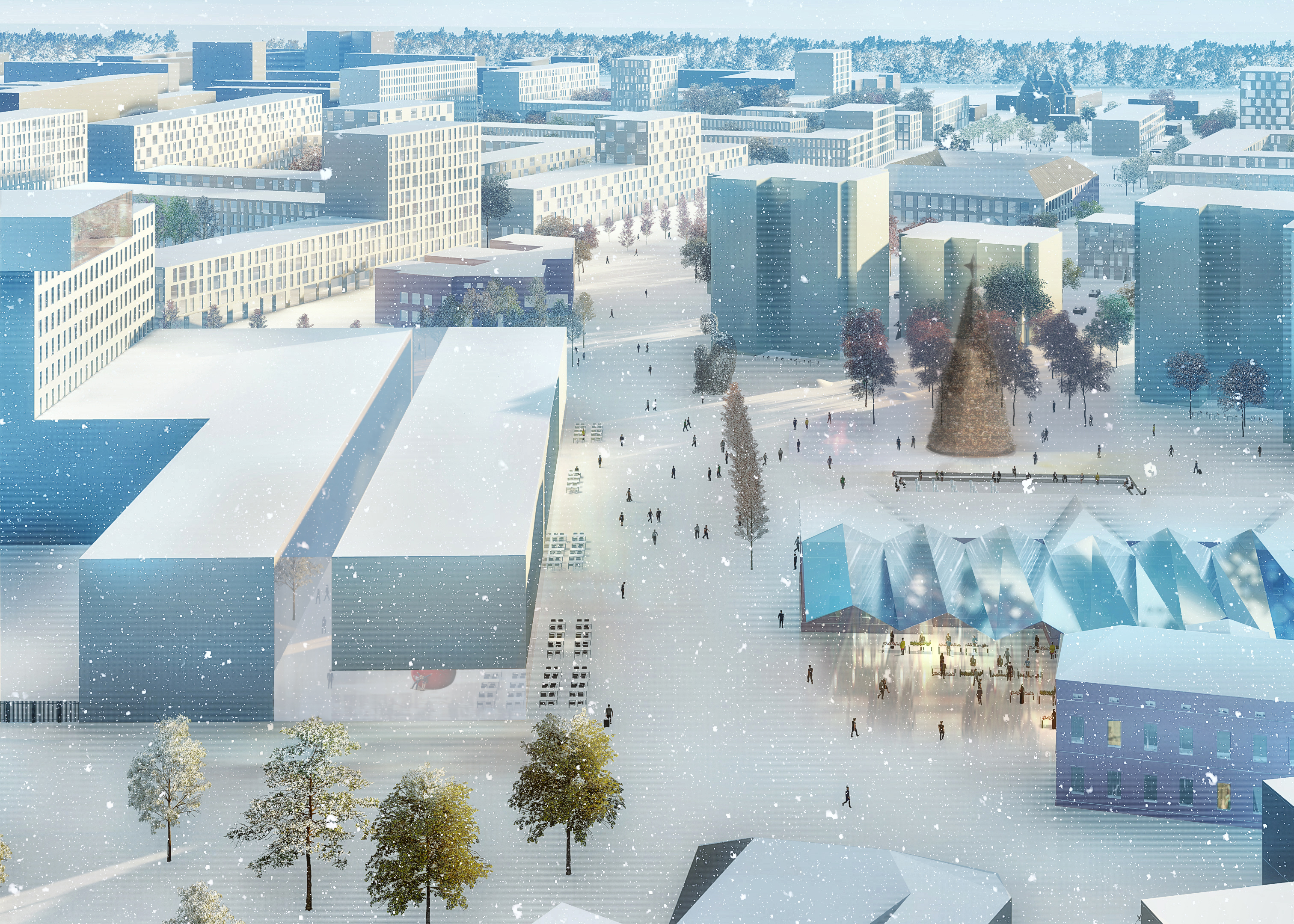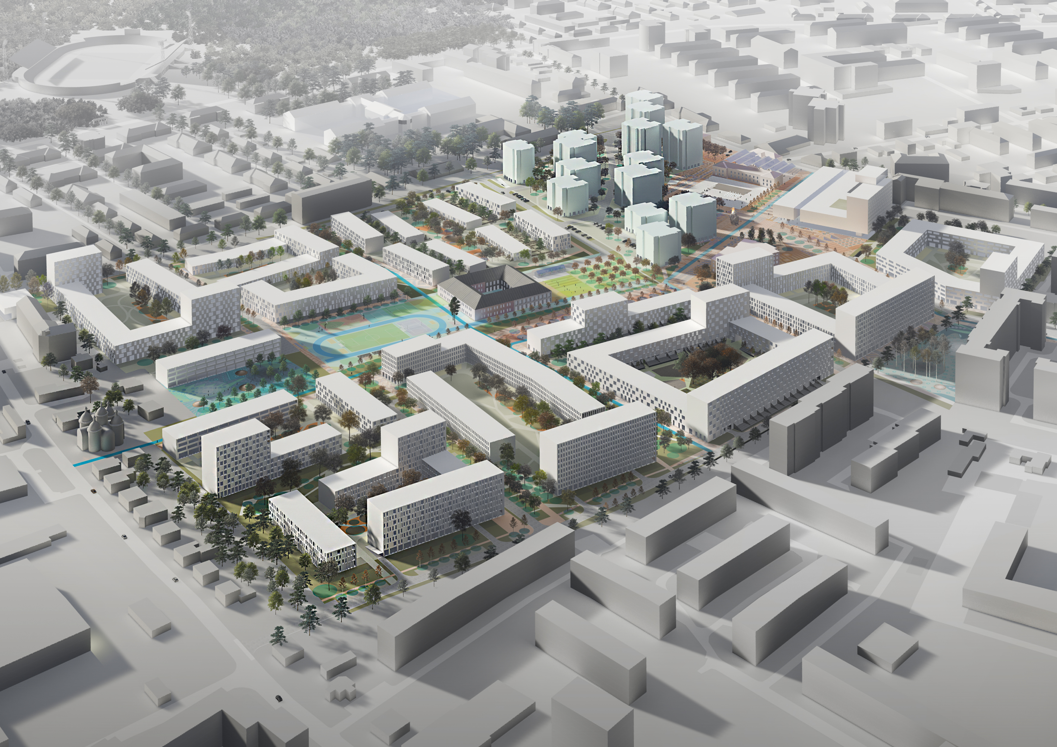 Конверсія колишньої військової території під житлову. На початок даної роботи на майданчику вже велися будівельні роботи, побудована перша група "башт".